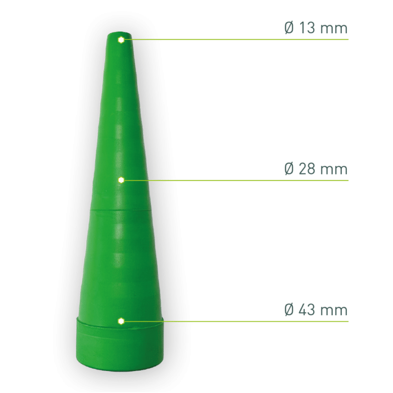 - Kuželový tvar se přizpůsobí různým průměrům